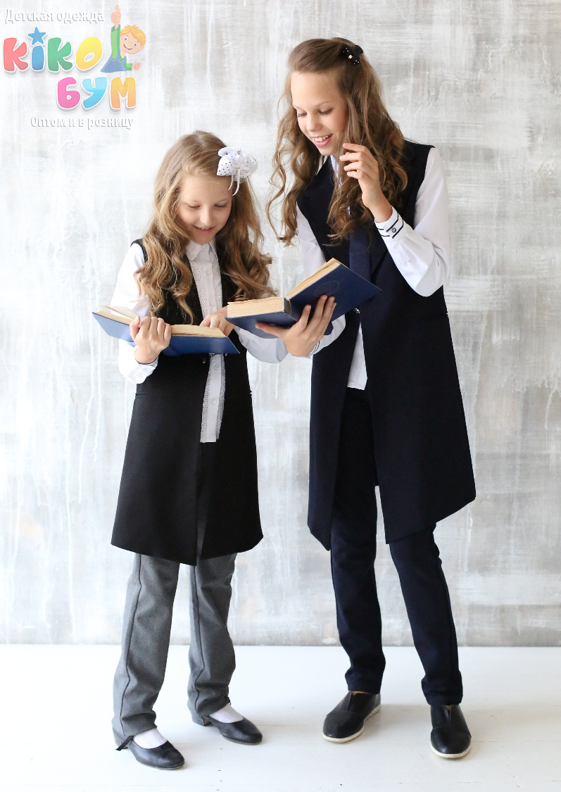 На фото в черном цвете на Маше жилет представлен с блузой Moda Lora, артикул 701225; на фото в синем цвете на Лере - также с блузой Moda Lora, артикул 701215