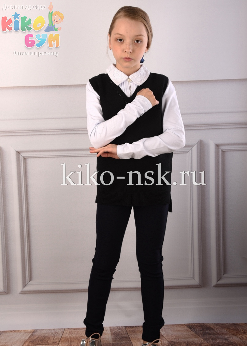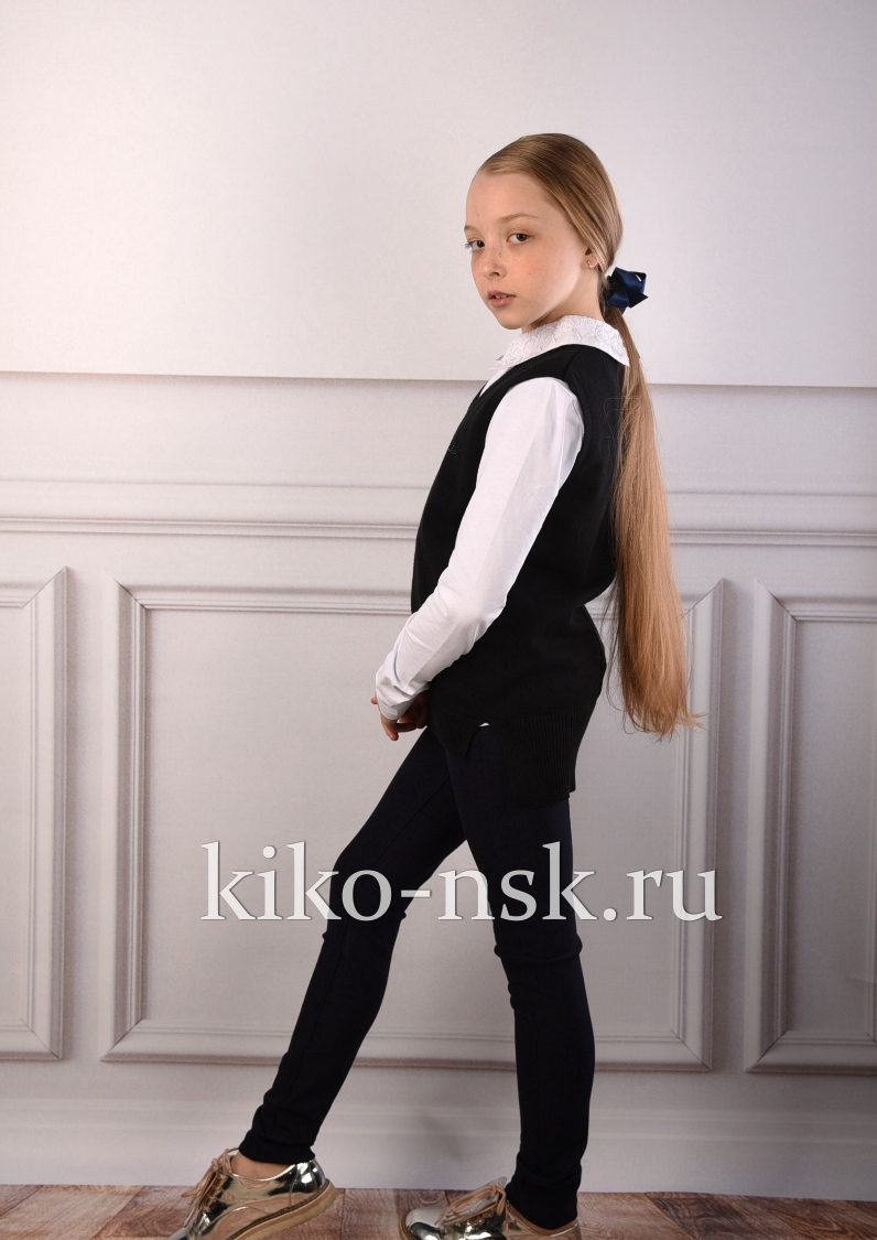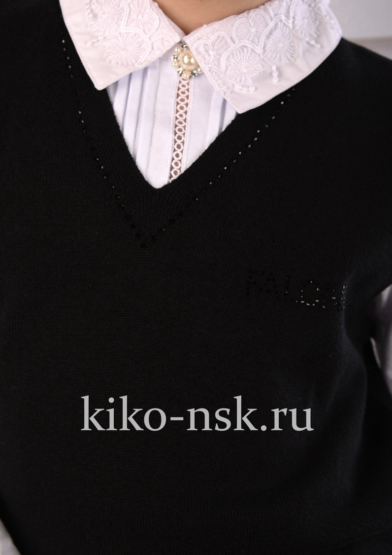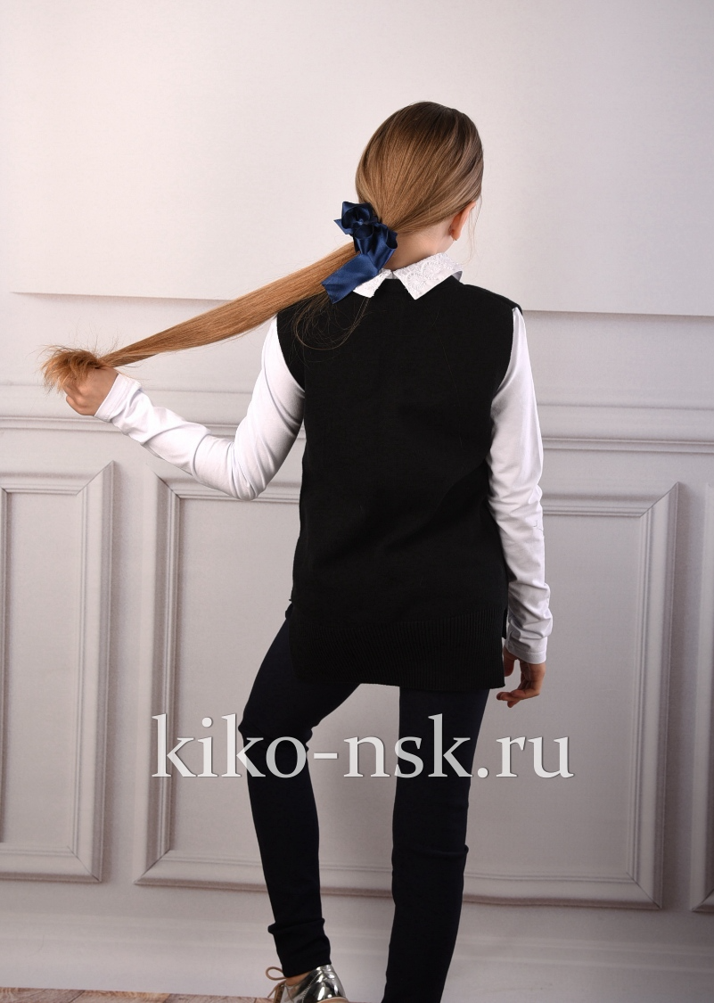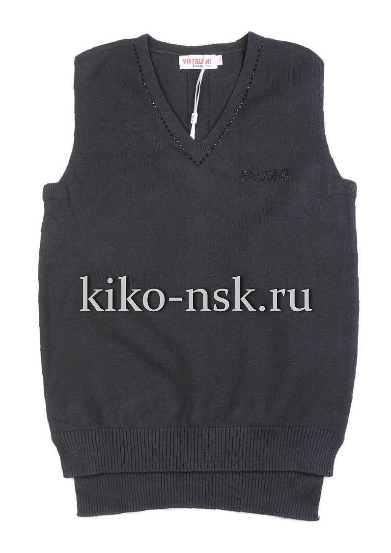 Жилет для девочки с V вырезом, стразы по полотну.