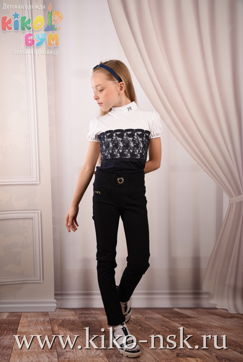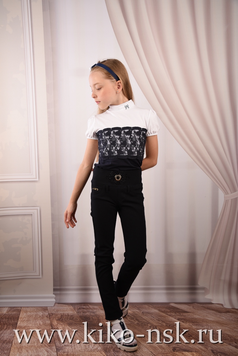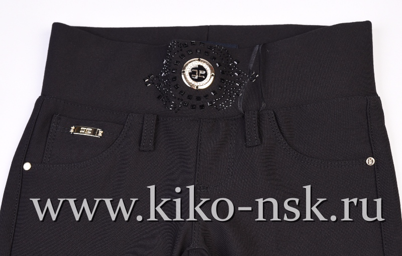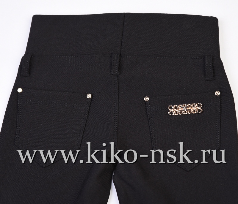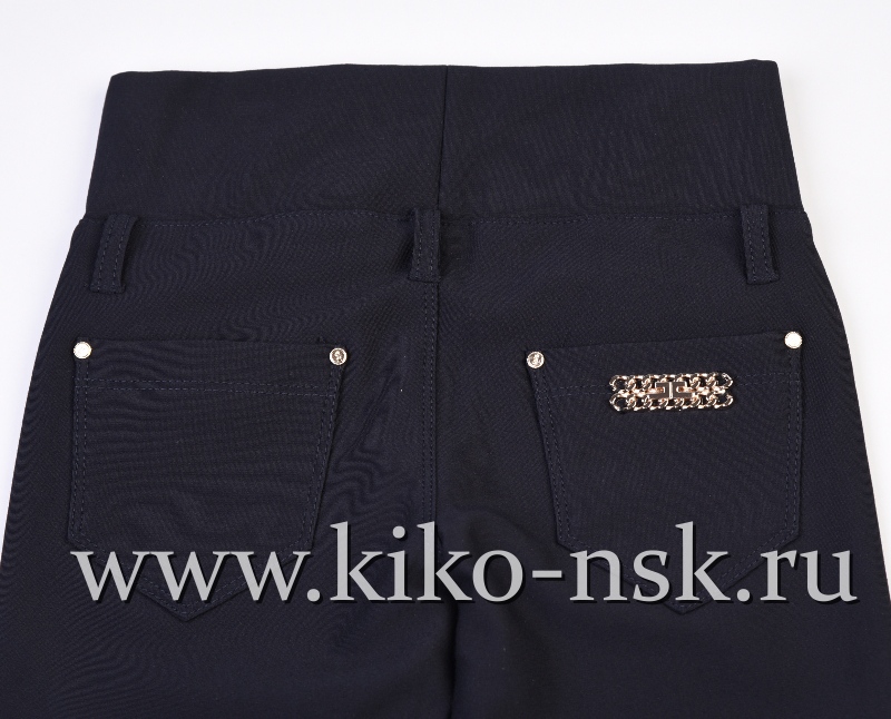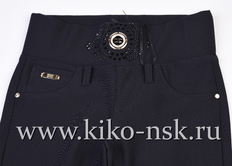 Брюки школьные для девочки, прямого силуэта. Ткань габардин. Очень нарядная модель с отделкой по поясу и карманам.