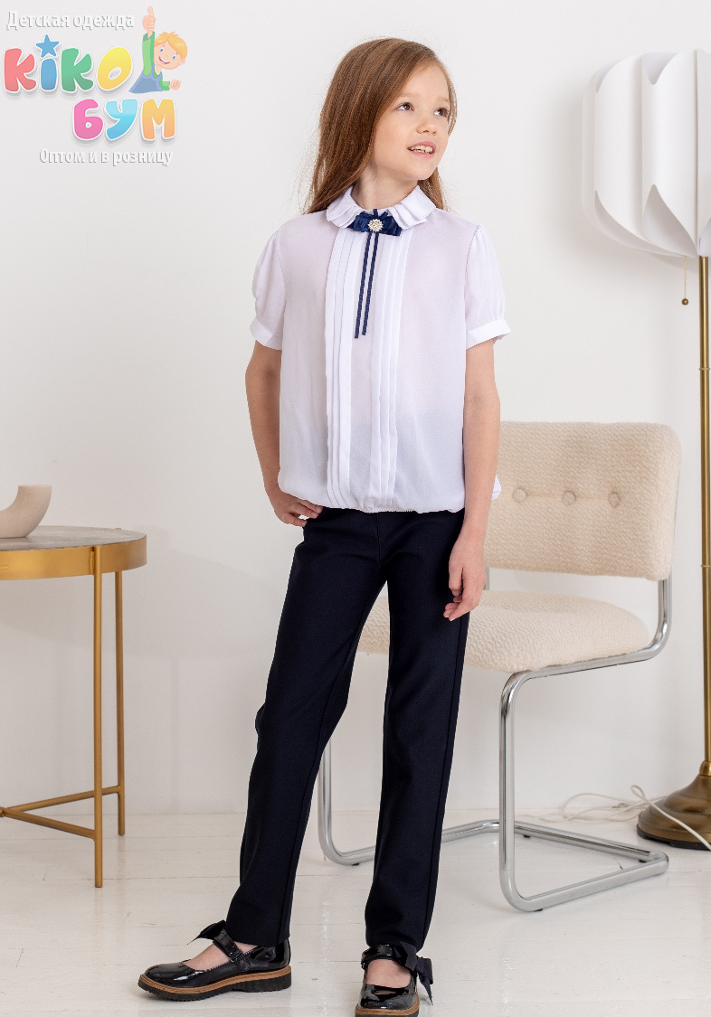 Брюки школьные для девочки, прямого силуэта на широком поясе.