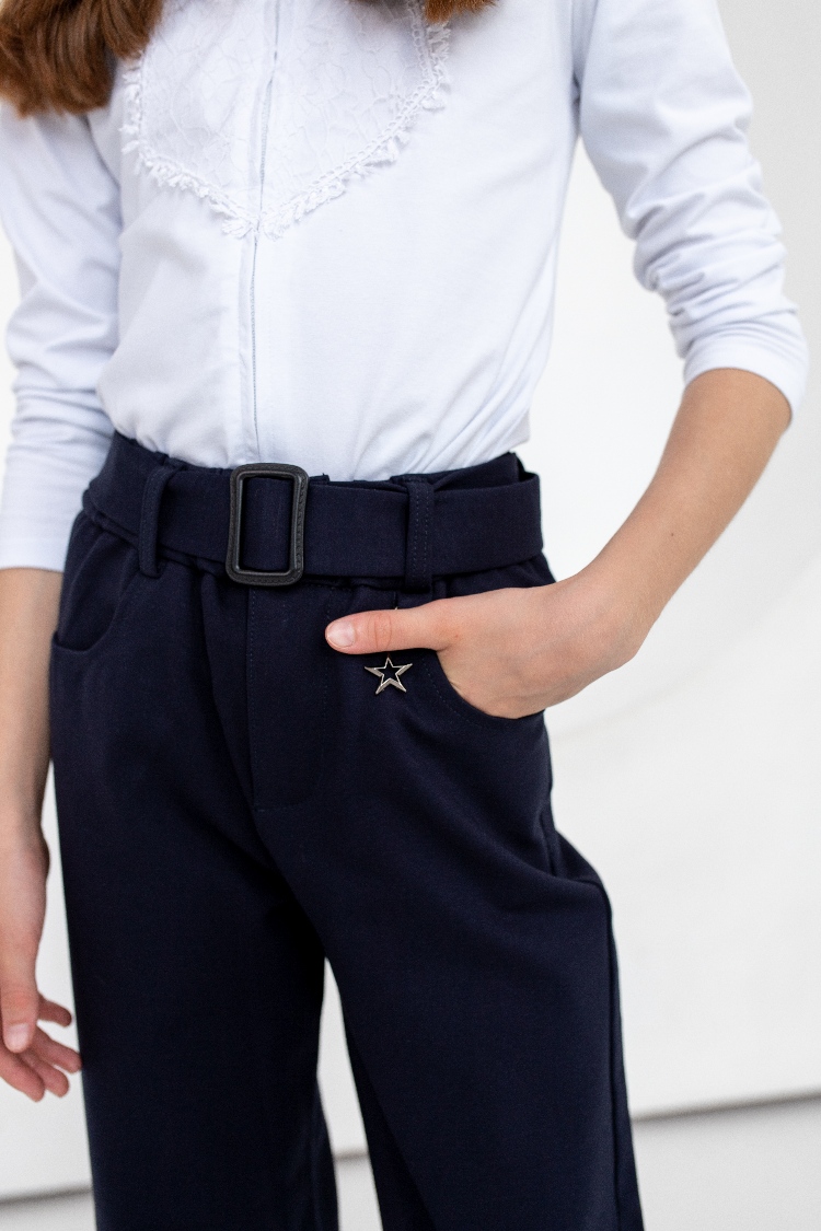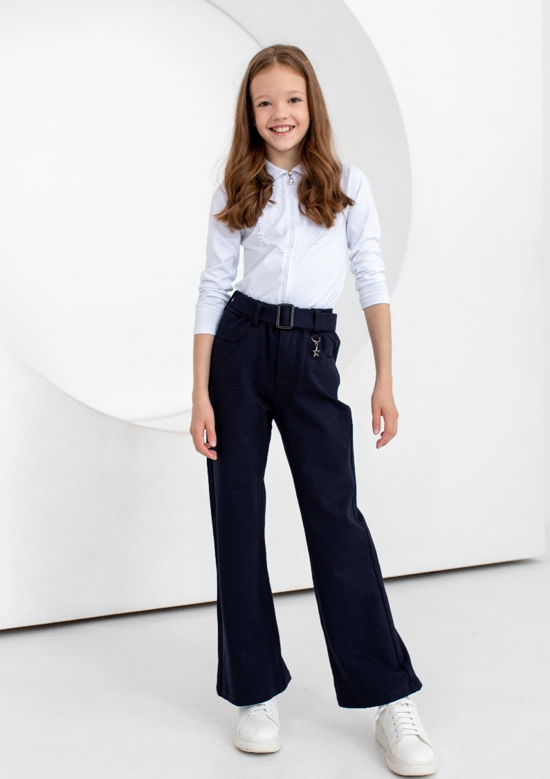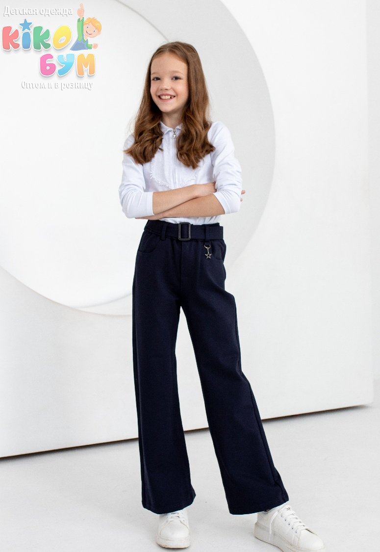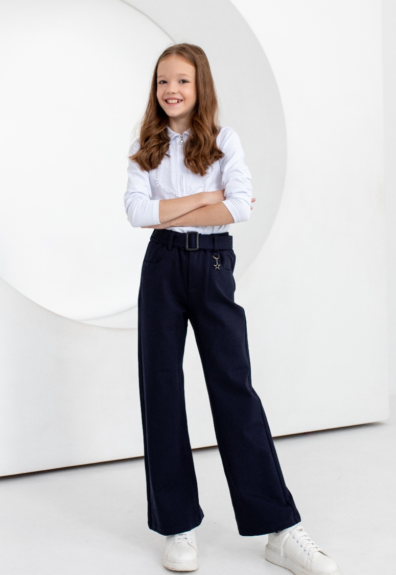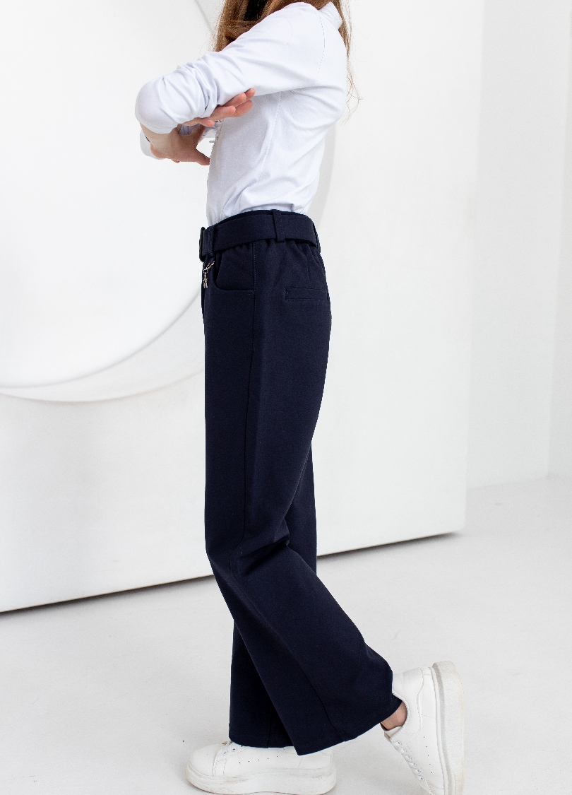 Брюки школьные для девочки на поясе, силуэт "Палаццо" -свободные от бедра