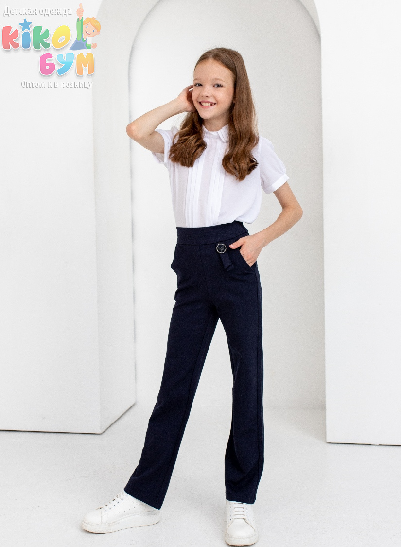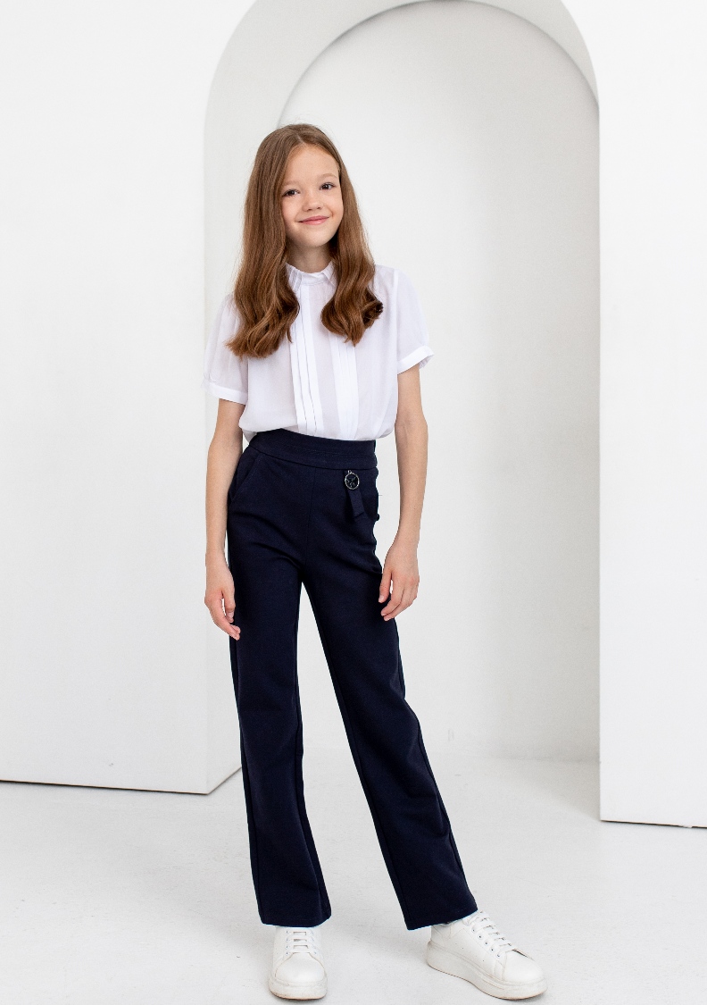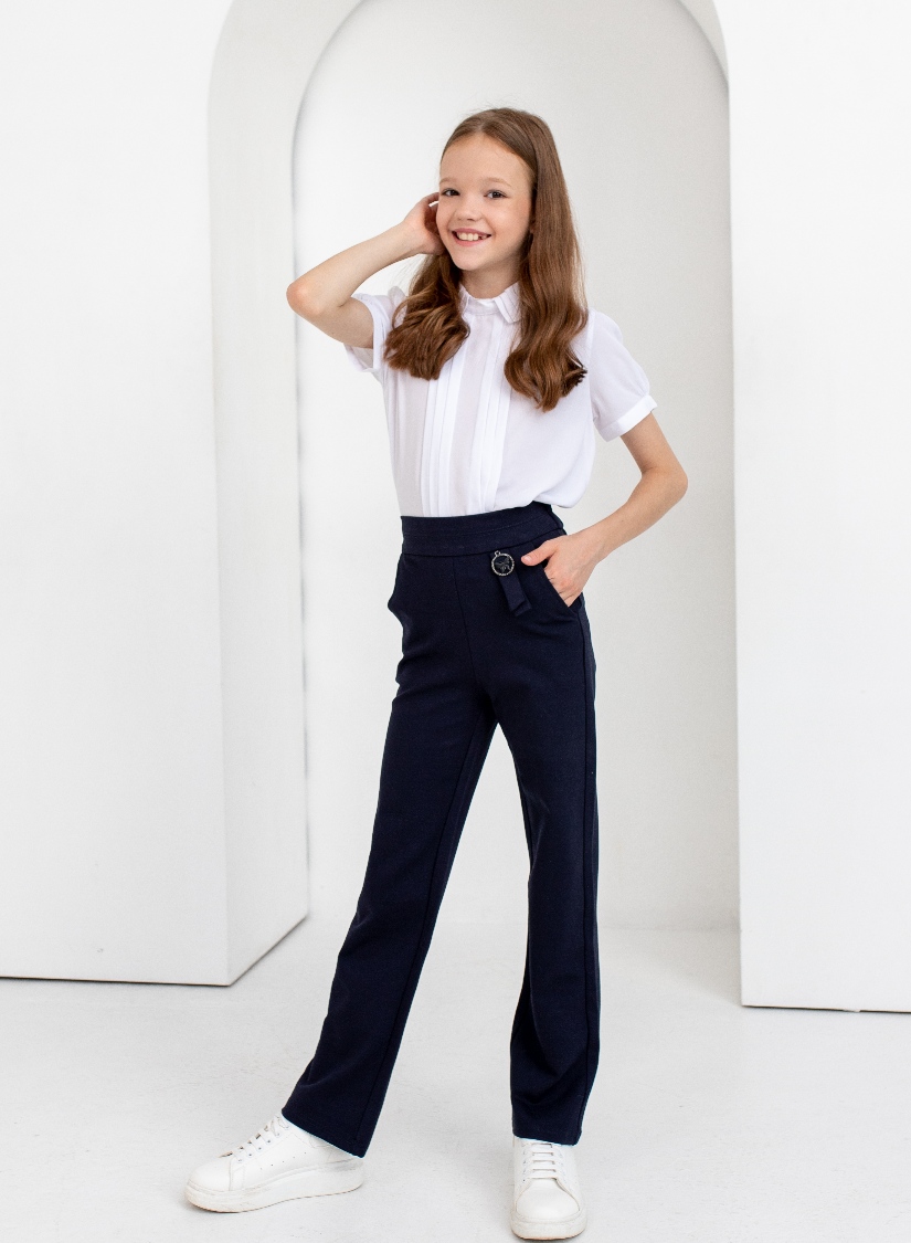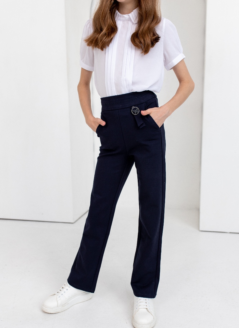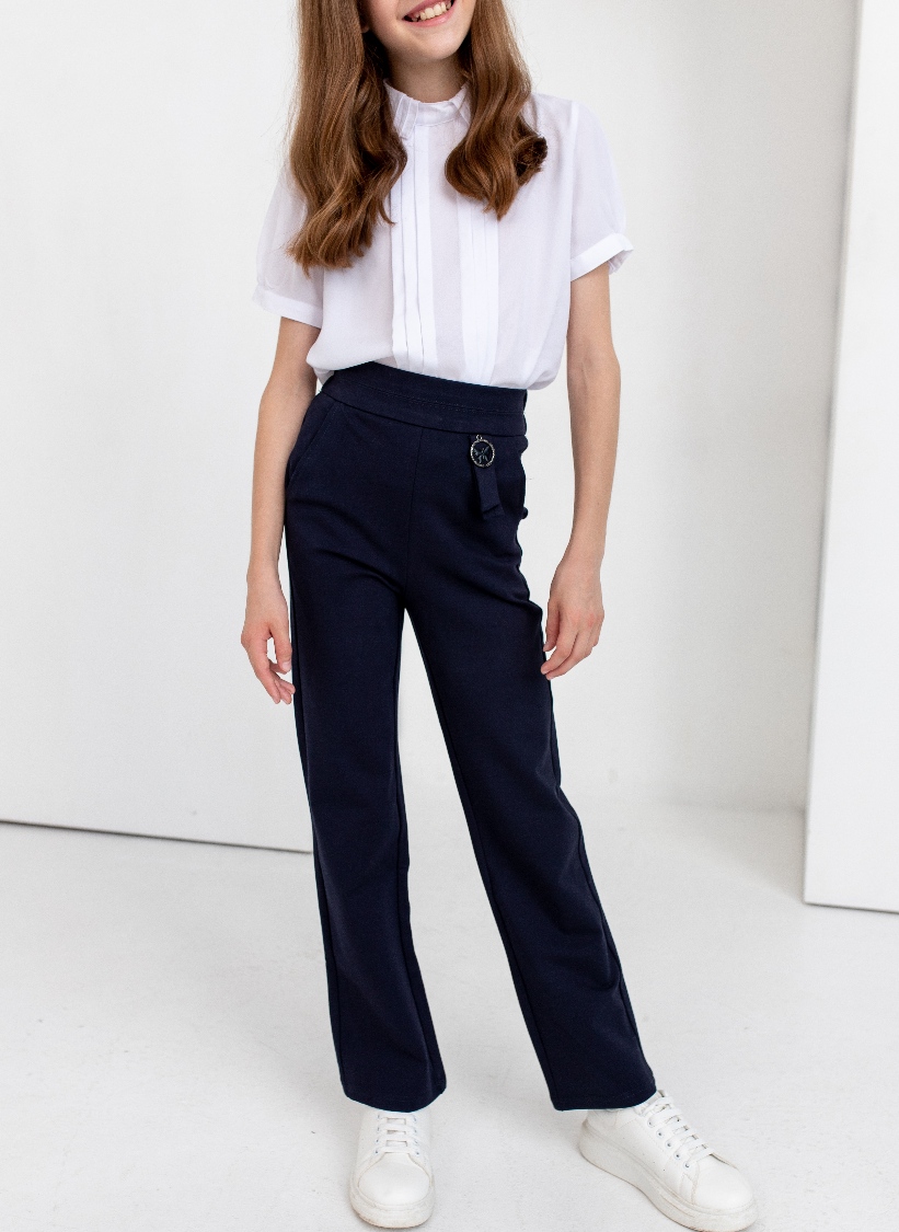 Брюки школьные для девочки на поясе, прямого силуэта.