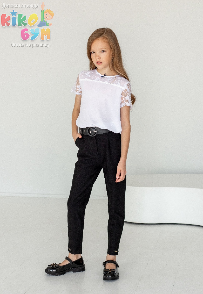 Брюки школьные для девочки на поясе, силуэт "Бананы" -свободные в бедрах, зауженные к низу.