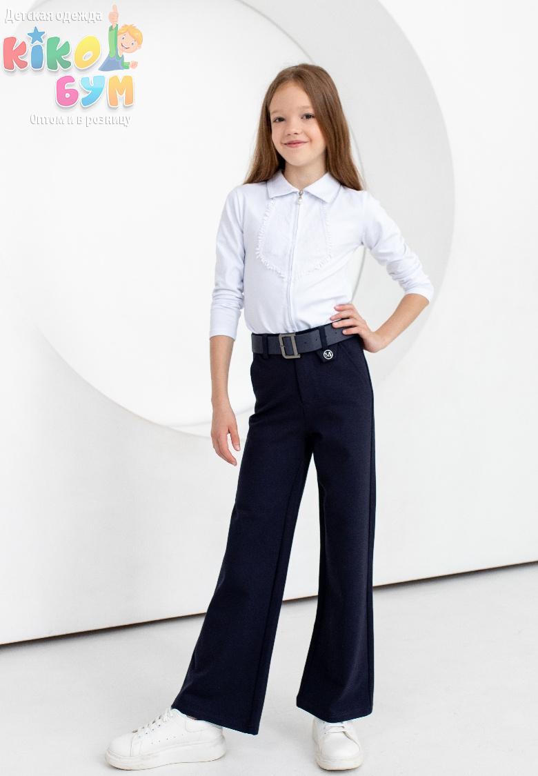 Брюки школьные для девочки на поясе, силуэт "Палаццо" -свободные от бедра