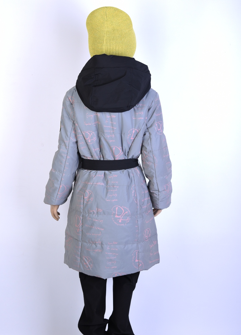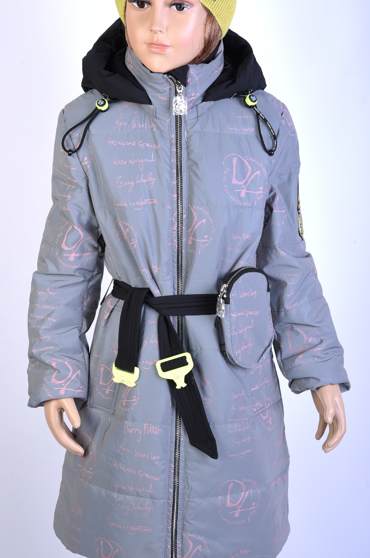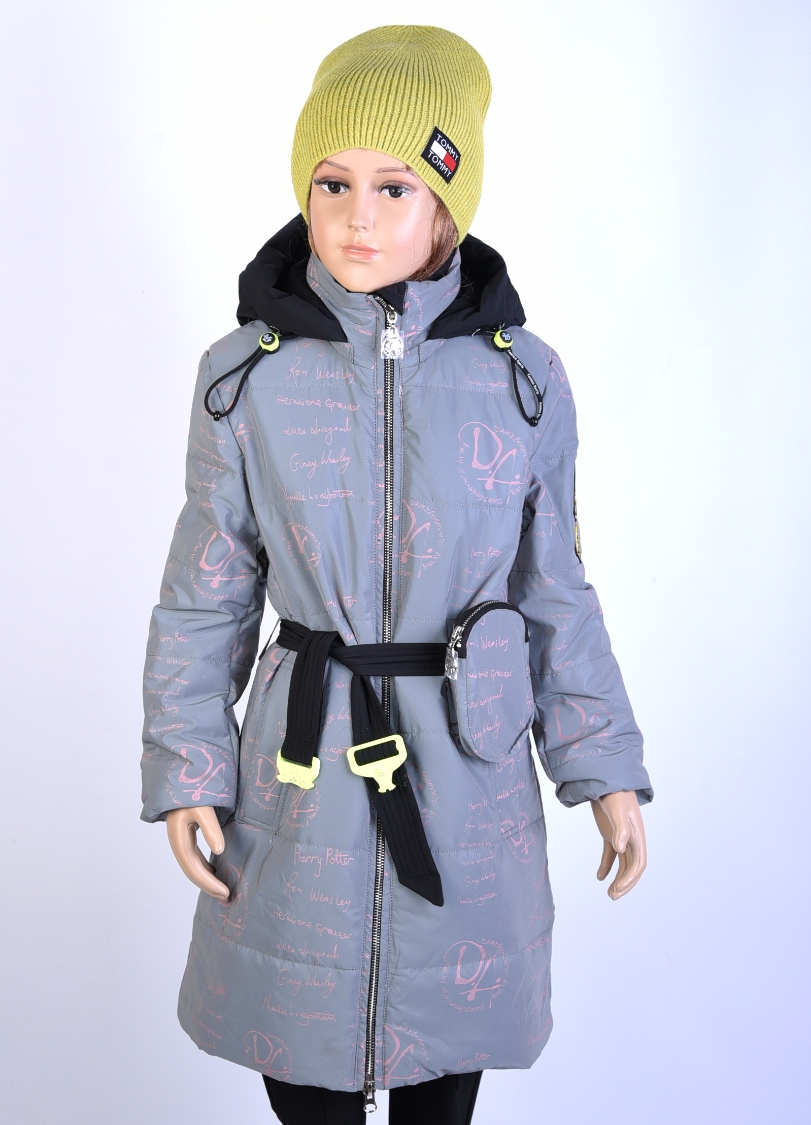 Капюшон и пояс контрастные, на поясе сумочка, яркие элементы - пряжка, отделки не дадут заскучать!