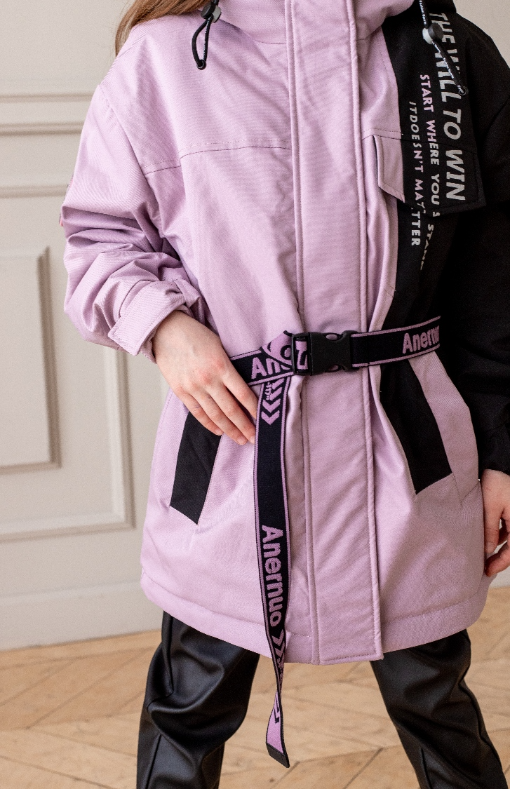 Очень плотная ткань, пояс-резинка, капюшон с козырьком