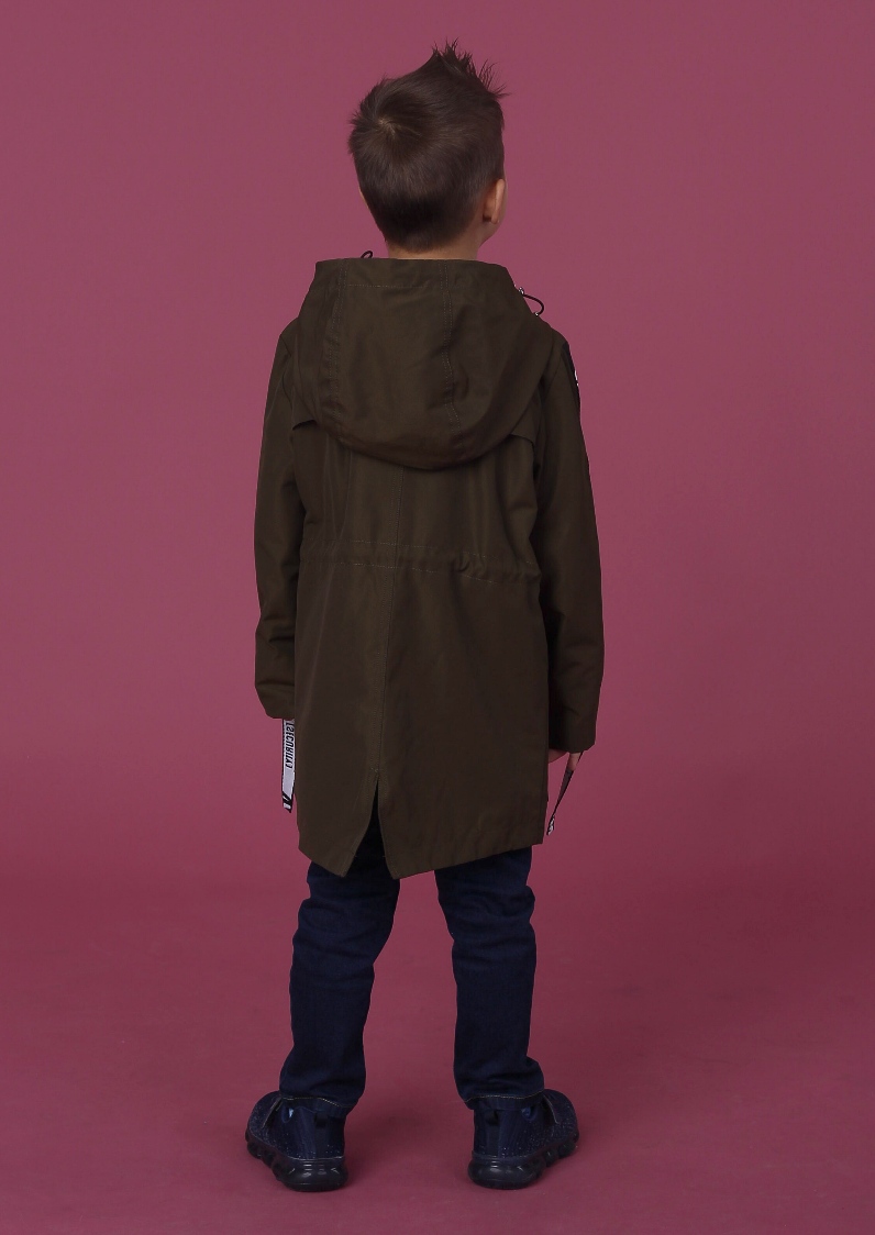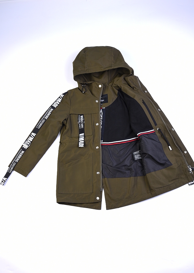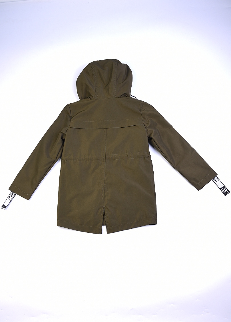 Капюшон не отстёгивается, на капюшоне куртки есть утяжка, по спинке флис.