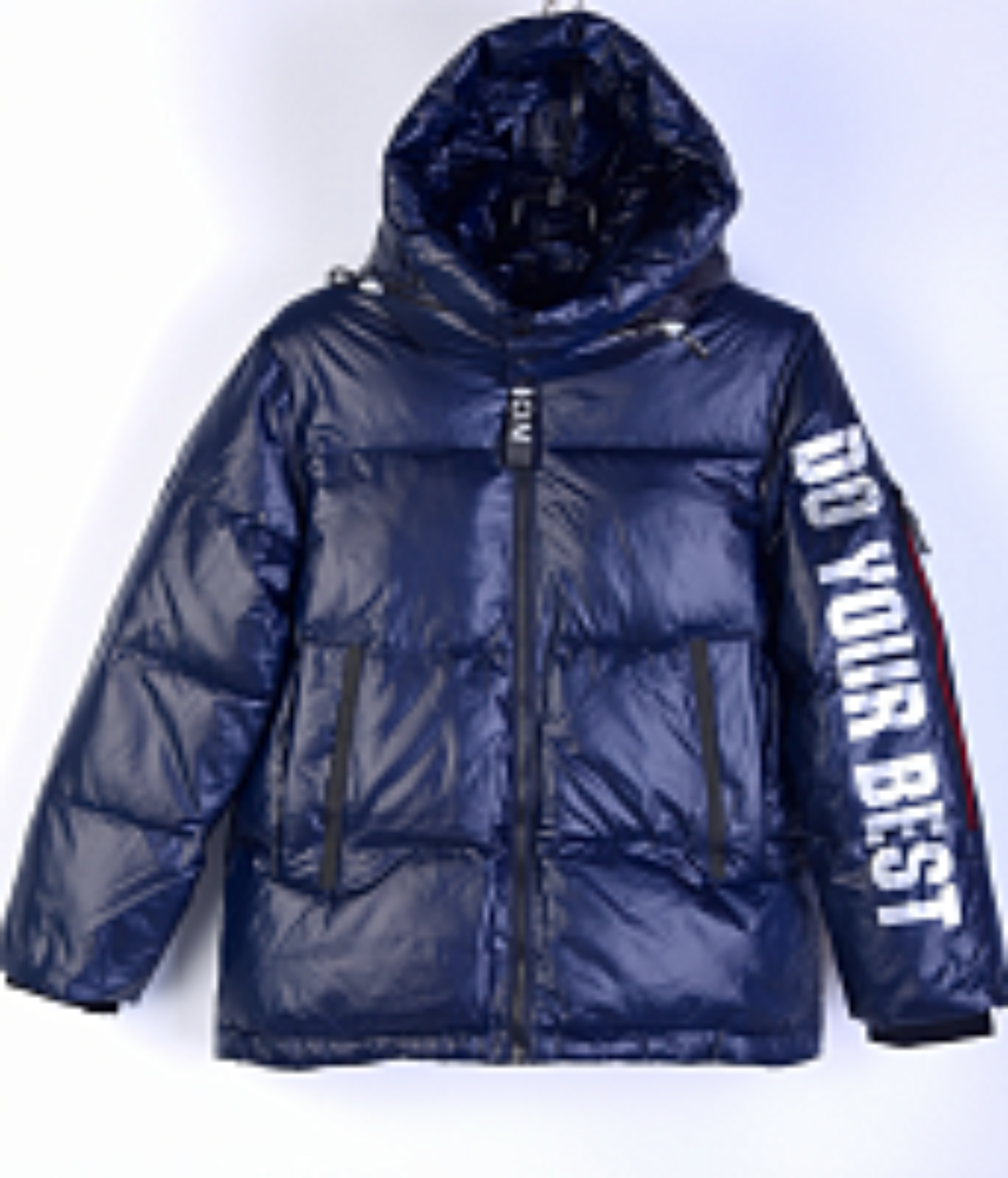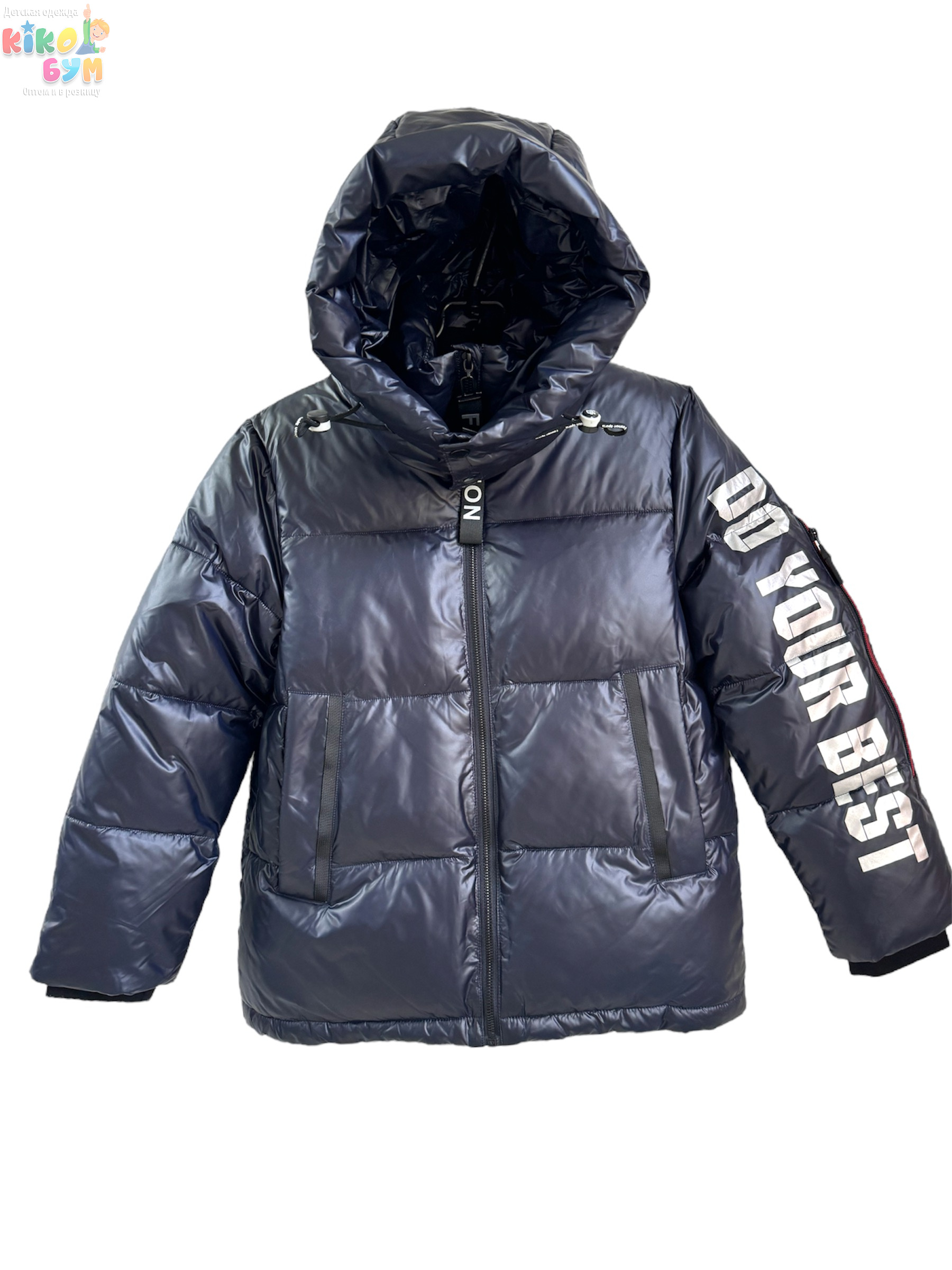 Куртка в спортивном стиле с объёмным капюшоном и удобными карманами.